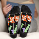 This fun Halloween socks are bright and colorful. The small print is crisp and shows the fun details. The softness of the socks feels nice on my feet and ankles. .