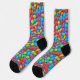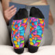 This fun Halloween socks are bright and colorful. The small print is crisp and shows the fun details. The softness of the socks feels nice on my feet and ankles. .