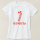 candy stick and a text in Russian: конфеты, that can be translate to: candy. You can customize this white t-shirt to change it fonts type, font color, t-shirt type and t-shirt color, and give it you own unique look.