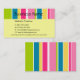 Business Card with candy stripe design, with full candy stripe on reverse. The yellow background color can be changed to suit your taste.