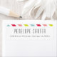 This return address label features a rainbow stripe pattern of blue, white, red, pink and lime green top border. Modern type and simple address design it's the perfect addition to your mail. Perfect for labeling children's items as well, like lunch boxes and book bags.