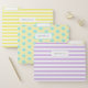 Pastel candy stripes in yellow, teal and purple with lollipop pattern on sweet personalised file folders.