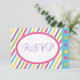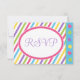 A cute and sweet candy themed Bat Mitzvah RSVP card. Featuring stripes and colorful candy.