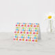 A notecard featuring a candy pattern consisting of lollipops, gumballs, cupcakes, and stick candy.
