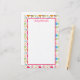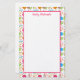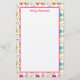Stationery paper featuring a candy pattern consisting of lollipops, gumballs, cupcakes, and stick candy on front and back. Personalize with your name on top.