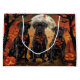 Unleash the spooky spirit with this eerie Halloween design featuring a pack of dogs under a dark, moonlit sky, surrounded by flying bats and glowing pumpkins. Perfect for those who love a touch of frightful fun with their furry friends!