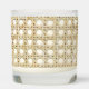 As the boho trend continues to grow in popularity, wicker and rattan are both enjoying a resurgence in interior design. This candle features a light colored open cane, wicker design often seen on chairs and baskets. The open areas remain clear allowing you to see what's inside the cup. (The wicker design is a realistic photograph and not actual woven rattan.)
