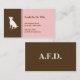 This custom calling card is perfect for any dog lover! The card features a posh illustration of the canine form. Text is set in a classic typeface against pink background.