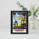 Classic vintage travel poster advertising Cannes in the Cote D'Azur region of France as a summer or winter holiday destination. It shows a beautiful view of the beach.