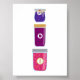 This mixed jams poster has a several typical canning food jar filled with three different types of jams in a simple graphic style with a fruit jams labels in several purple and pink colors. See the collection to mix and match this mixed jams print with other canned food prints. You can make the Pineapple Jam print larger or smaller or transfer to other wall products.
