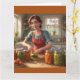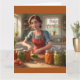 This birthday card features a mother/woman canning veggies from her garden.