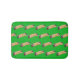 This rug is just as pictured! Vibrant Red and very soft material, nice to step in out of the tub! Matches my set of accessories and shower curtain! A must have to add some whimsy to your bathroom! Very nice, vibrant and clear print! Beautiful!