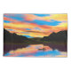 A canoe crossing a mountain lake reflecting the beautiful oranges and blues of a colorful sunset. Add your own text.