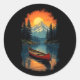 Canoe Splash Adventure – Retro Lake Sunset Classic Round Sticker