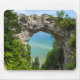 A photo of a group of canoes and paddleboarder cruising the beautiful aqua waters of Lake Huron. I framed them just as they were in the middle of the Arch Rock located on Mackinac Island Michigan,