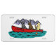 Canoeing Labrador Retrievers in the Mountain License Plate. Whimsy and funny Canoeing Labrador Retriever Dog Cartoon design. Great fun gifts for dog lovers who love Labradors! Three of Yellow Labrador and Chocolate Labrador and Black Labrador enjoy canoeing in the mountain view. Happy camping scene for Lab fans. Created by Naomi Ochiai from Japan.