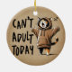 This playful design features a sleepy cartoon cat wearing an oversized hoodie, yawning with its arms stretched out. Alongside the cat are the bold, hand-drawn words "CAN'T ADULT TODAY," humorously capturing a mood of exhaustion or reluctance to face grown-up responsibilities.