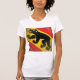 The material is a great quality that is hard to find with most tee shirts. Fabric was not see-through or thin at all, but was also very soft and comfortable. The shirt description states that it runs a little small, so I sized up one size for a perfect fit! I would definitely buy this type of tee shirt again because I love the fit and high quality fabric that I cannot find anywhere else. The printing was perfect and just as pictured. Loved the cute quote and really enjoy the tee in both the quality and design. I love quirky typography designs and funny quotes and I am extremely pleased with the overall quality and value I get at Zazzle!