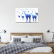 This canvas wall art has the look of white washed boards of a rustic charmer with blue deer/elk with an unusual landscape scene on them in blue tones. Merry Christmas text at top.