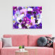 Canvas wall art shown with a photo print of pretty purple pansies.
