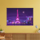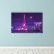 Canvas wall art shown with a art print of a Paris city scape in purple color hues. Customize this item or buy as is.