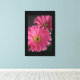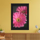 Canvas Art shown with a photo print of pink daisies on a black canvas background.