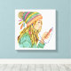 Stretch Canvas of a young girl wearing a boho hat and listening to music.