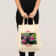 The printing came out very well, better than I had anticipated. The natural color fabric is sturdy with strong seams and comfortable handles. This tote fits easily over my shoulder. As it is filled, the bottom flattens out--very cool! I would buy this product again. This grocery tote holds a lot of groceries! The image quality was very good. The colors were a little darker than I had expected. The darkness may have been due to printing on a natural color fabric rather than on white. The cat design is attractively centered on the tote. The spirit of the design is very lively, just as it appears on the Zazzle website.