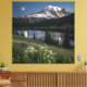 Canvas overlooking the mountain, with a lake and a beautiful moon