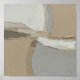 This is an original abstract painting characterized by its heavy texture and neutral, earthy color palette. The composition uses blocks and layers of muted colors—primarily creamy whites, soft beiges (or tans), and warm greys—applied with a palette knife to create a rich, three-dimensional surface. The rough texture of the underlying burlap or raw canvas is intentionally visible in several areas, adding an organic, rustic element to the modern, minimalist design. This piece evokes a sense of calm and is perfect for adding subtle sophistication to any contemporary or Scandinavian-inspired space.