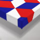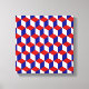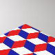 3D blocks in red, white and blue. They are stacked so that as you stare at them, the optical illusion is that they change orientation.