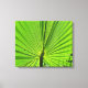 Green palm leaves. Sunlight plays through and around the palm frond. Brilliant greens with a hint of yellow at the edges.