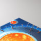 This sci-fi print depicts a tall metallic robot approaching a circular, glowing UFO that is hovering in the sky.