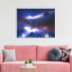 This stretched canvas wall art is shown with a photo print of a lightning storm.