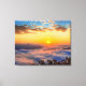 This stretched canvas wall art is shown with a sunrise photo print.