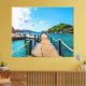 This stretched canvas wall art is shown with a photo print of a beautiful water dock scene in Thailand.