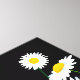 Wrapped canvas art is shown with a graphic print of pretty white daisies on a black background color.