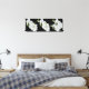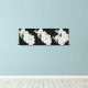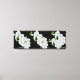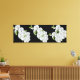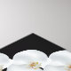 Wrapped canvas art is shown with a graphic print of pretty white orchids on a black background color.