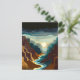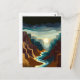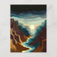 A beautiful landscape of a canyon with a river in bold shades of brown, tan, blue, cyan, gold, and beige.