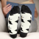 This fun Halloween socks are bright and colorful. The small print is crisp and shows the fun details. The softness of the socks feels nice on my feet and ankles. .
