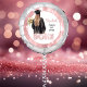 Elegant black graduation cap and gown, and pink and white floral swag bouquet graduate's name and class year "DONE" graduation design on a faux sparkles look background.