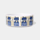 This is a heavy, durable bowl decorated with Tibbies of many colors, the perfect size for hungry/thirsty Tibs. The design is interesting and printing clear.