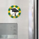 Well Designed High Quality Magnet. Colors are Vibrant Clear Excellent good size Diameter Circumference Fonts Red Folio Bold Clover Green Outline Puffy White Interior Image