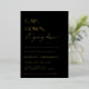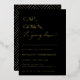 CAP, GOWN, it's going down! Gold Foil Contemporary graduation party invitation. Modern typography design on classic black color backgrounds with faux gold geometric pattern backing.