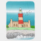 A colorful illustration of Cape Agulhas Lighthouse. This is the southernmost lighthouse on the African continent. This Lighthouse is on Cape Agulhas, in South Africa.