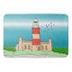A colorful illustration of Cape Agulhas Lighthouse. This is the southernmost lighthouse on the African continent. This Lighthouse is on Cape Agulhas, in South Africa.