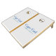 Natural Wood Cornhole Set, Royal Blue and Yellow bags