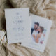 CAPE COD COASTAL. Wedding save the date photo card. Features, coastal blue typography, seashell illustration detail and single photo on back.