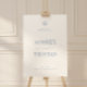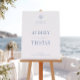 CAPE COD Coastal Blue, wedding welcome foam board sign. Features, light blue typography and scallop seashell illustration.