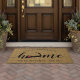 Show some hometown pride with this custom doormat featuring "home" in calligraphy script lettering with a silhouette map of Cape Cod, Massachusetts standing in for the letter "O." A heart illustration inside the map completes the design; you can change the position of the heart to your home town or beach by opening the design tool and dragging the heart shape. Personalize with your home city, family name and year established to create a perfect finishing touch for your front door, or a memorable housewarming gift.